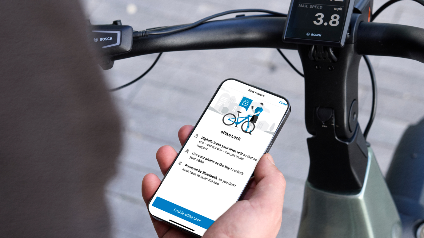 The Bosch eBike Flow app gives you more control with digital locking, theft alerts, customizable ride modes, and navigation — all from your phone.